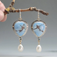 Vintage Mavi ve İnci Taşlı Küpeler
