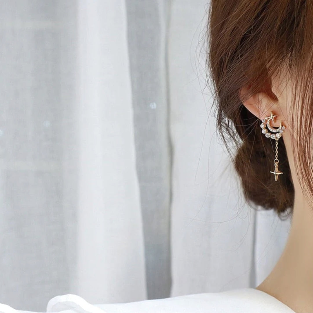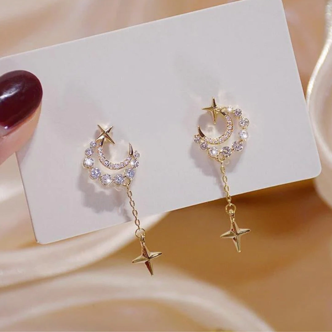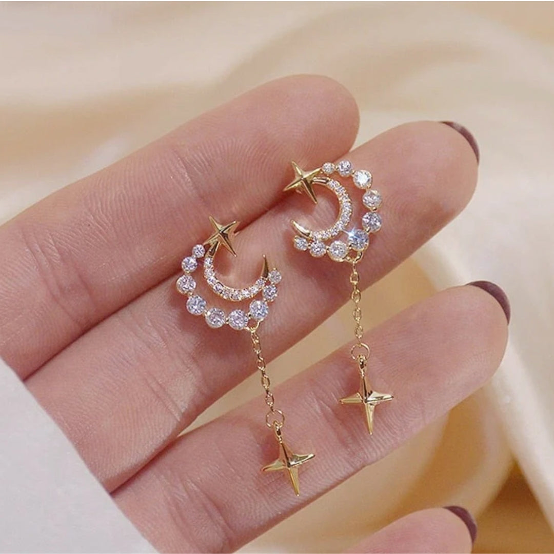 Altın Zirkon Taşlı Egzotik Ay Kolye Küpe