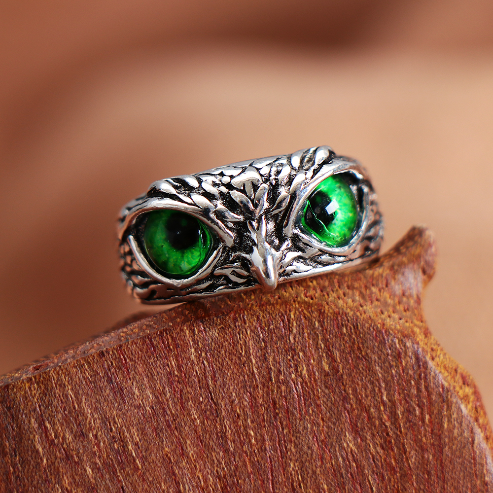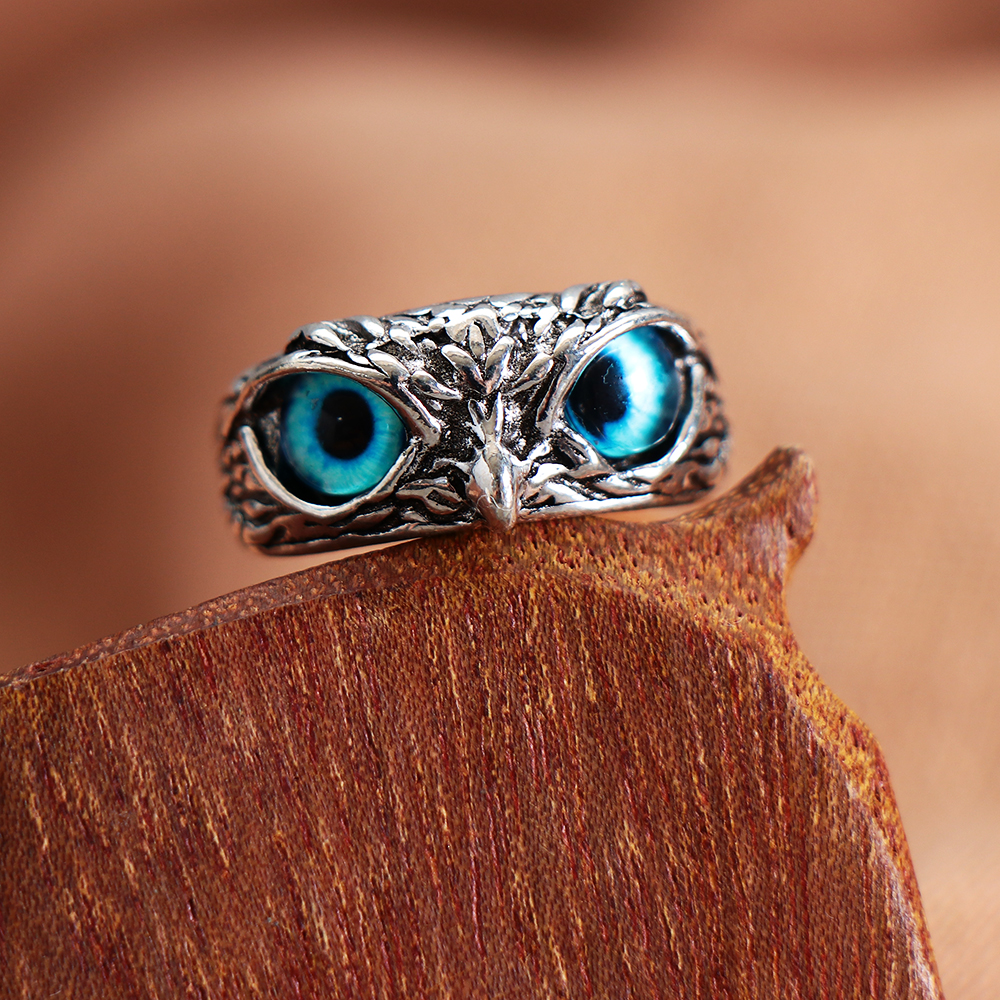 İyi Şans Baykuşu Gümüş ve Opalden Ayarlanabilir Yüzük